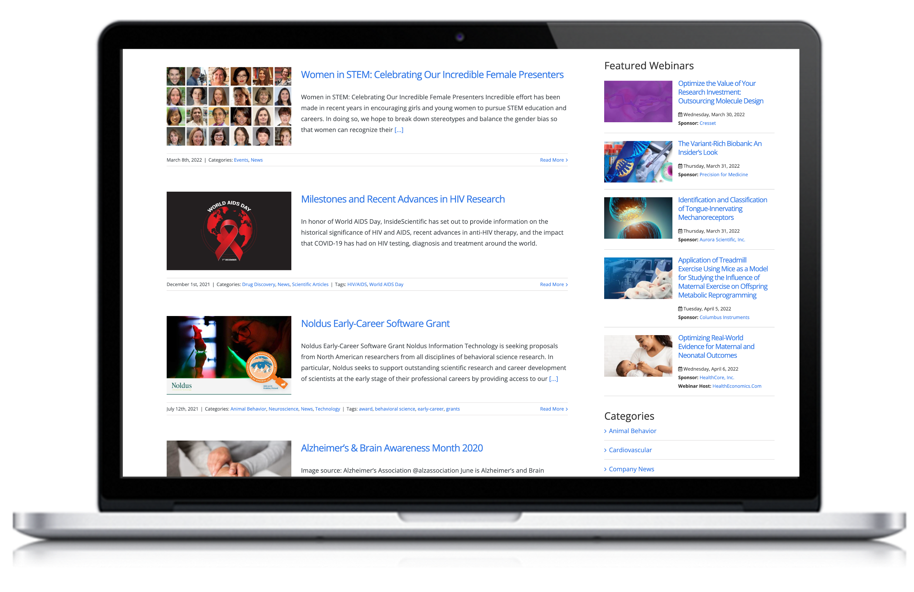Digital marketing requires carefully considered writing and editing of online content to enhance SEO and drive website traffic. We have in-house category and subject-matter experts from a variety of scientific backgrounds and a dedicated writing team to create new thought-provoking articles, blogs and original content while maximizing SEO. Additionally, we have ready-for-publication material available for sponsorship in a field of your choice that can be adapted for your specific marketing needs.